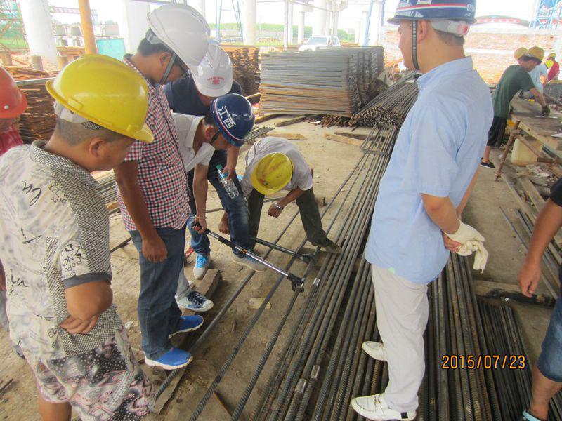 自活動開展以來,總監(jiān)辦及項目部對A1標全線鋼筋加工場進行多次檢查,并做出具體要求。重點檢查鋼筋直螺紋加工質(zhì)量,如端部平整、絲牙完整性、扯絲長度等,并采用扭力扳手、通止規(guī)試驗檢測等手段檢查鋼筋直螺紋連接質(zhì)量。